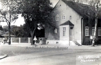 - 1930er Jahre: Bau des Hauses. Es gehörte ursprünglich dem Schlachtermeister Weis. Seit Beginn befand sich hier eine Bäckerei ("MÄRKSCH"). (Danke an Klaus Schlickeiser)